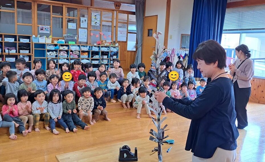 園長先生がみんなにお祝いとして新聞紙を使ったマジックを披露してくれましたよ😊🙌