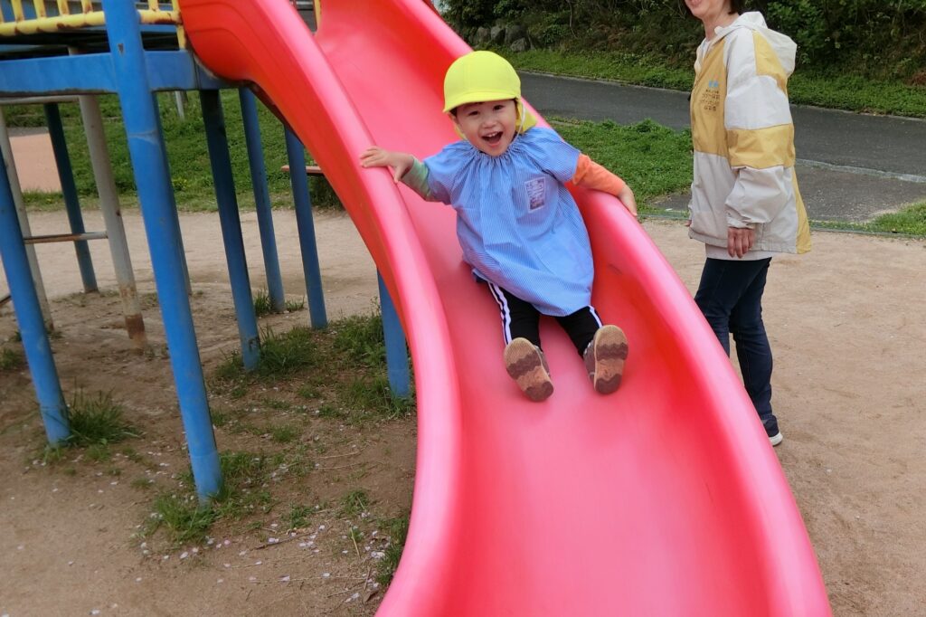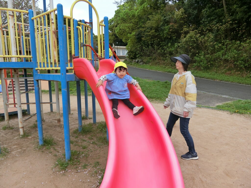 先週は2回散歩に行ってきました🍀2回目の散歩では1回目よりも距離のある場所でしたが、誘導ロープを持って一生懸命歩いていましたよ✨👏公園に到着すると疲れも吹き飛んだようで大喜びで遊具へ走って行き、あそび始めていました😊滑り台は大人気でしたよ🤗