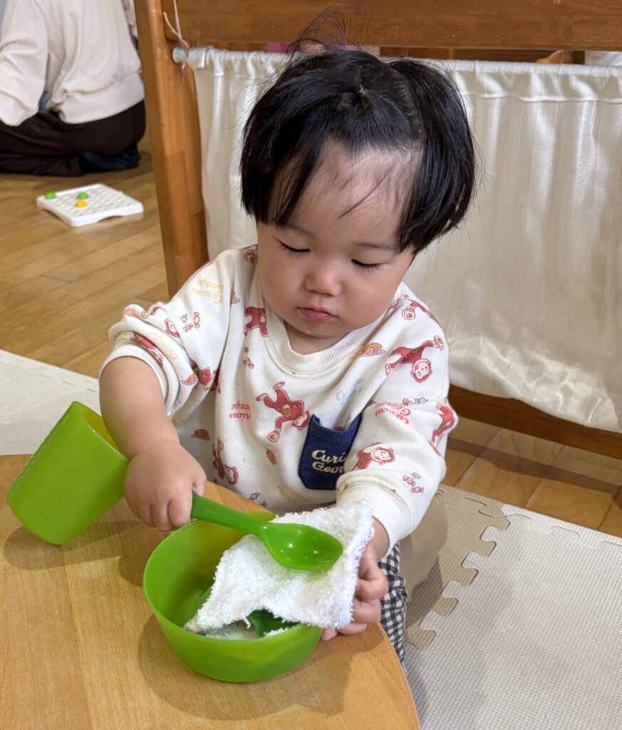 ジュースもコップにそそぎ・・・「あ~」「おいしっっ♪」と楽しんでいます😊