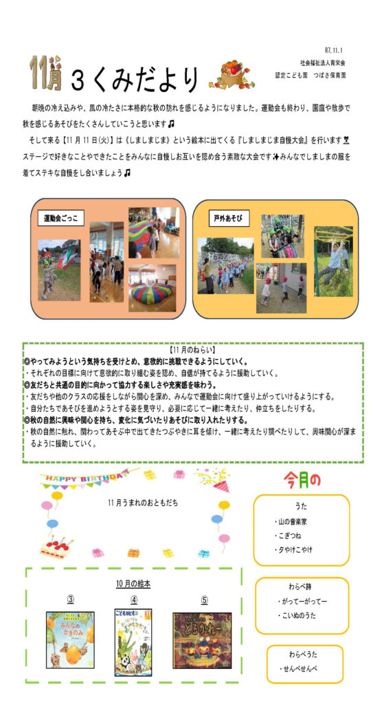 3くみだより(3,4,5歳児)