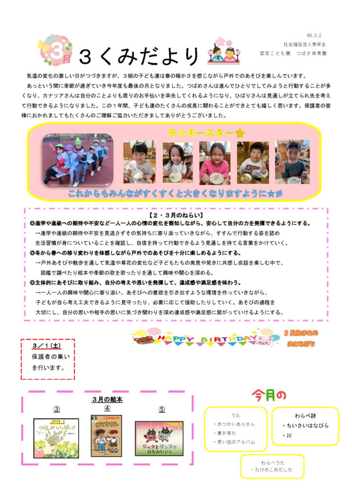 3くみだより(3,4,5歳児)