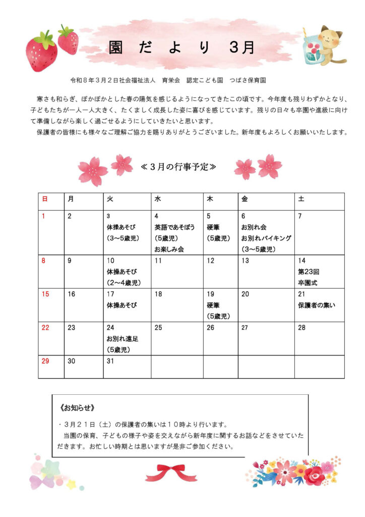 3月園だより